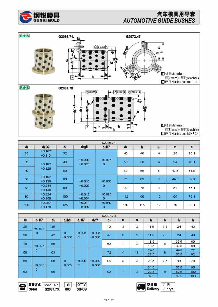 德標汽車模用自潤滑石墨導套G2081.71 G2087.73
