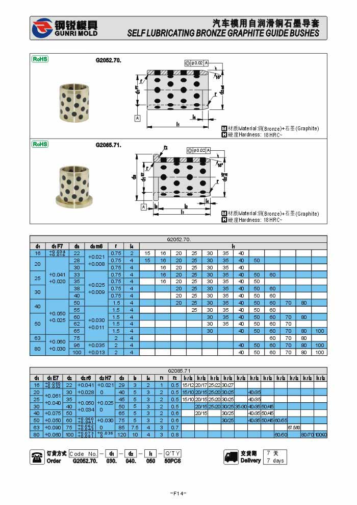德標汽車模用自潤滑石墨導套G2052.70. G2085.71.